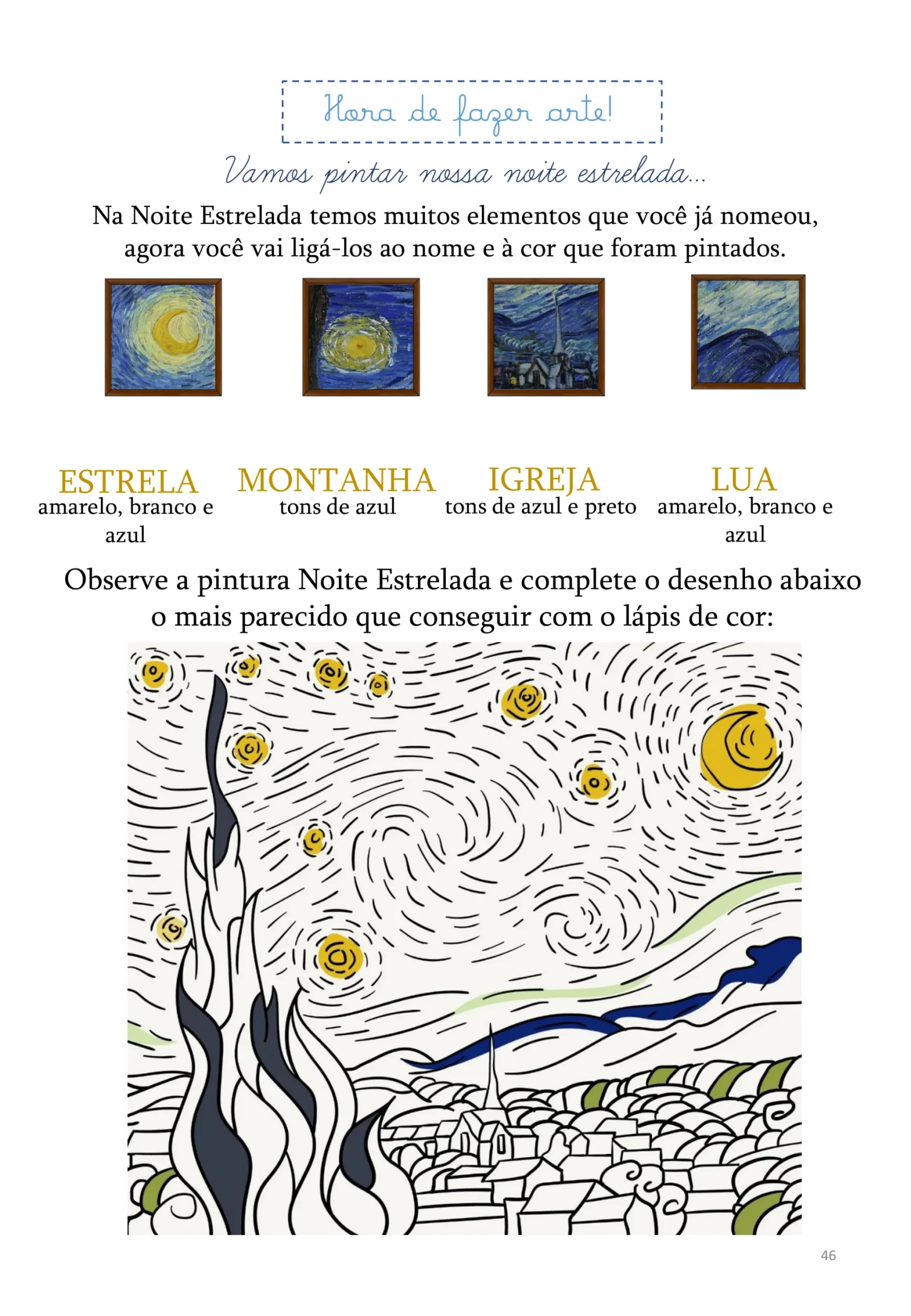 ❖ Exercícios de apreciação artística, história da arte, desenho e pintura;