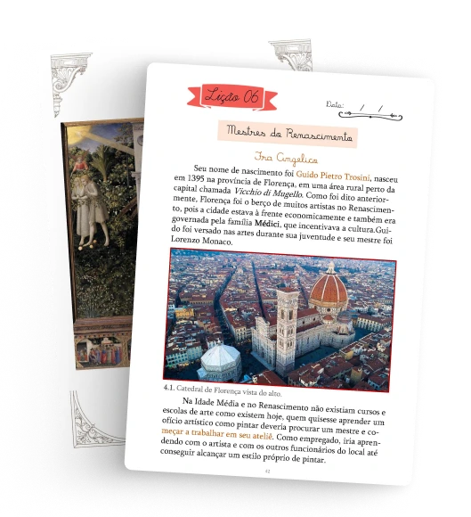 Em um mundo que muitas vezes ignora a beleza e a profundidade da cultura, oferecer uma educação estética sólida é essencial. Nosso livro digital foi cuidadosamente elaborado para fornecer o contato das crianças com o universo da arte clássica e tradicional, de uma forma cativante, profunda e divertida e que os guiará no desenvolvimento de habilidades artísticas de forma ordenada.